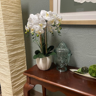 I rearranged items, unified the design, and crafted a focal point along with custom artwork I created. A focal point is crucial for every space, particularly healing spaces. These areas should be serene, restorative, accommodating for personal items, and functional for the practitioner.